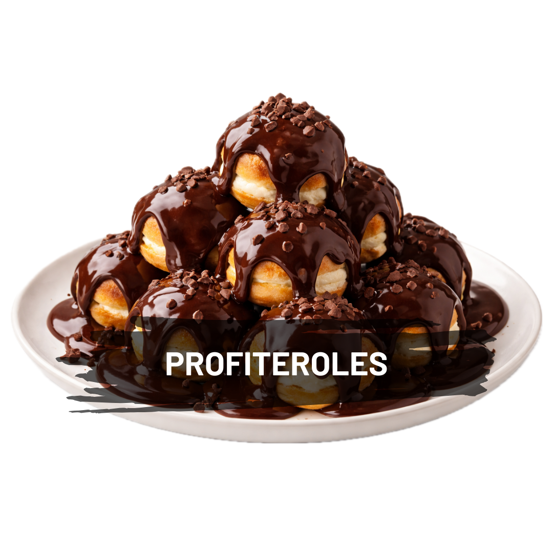 Our Profiteroles are crafted with light choux pastry filled with smooth cream and coated in...